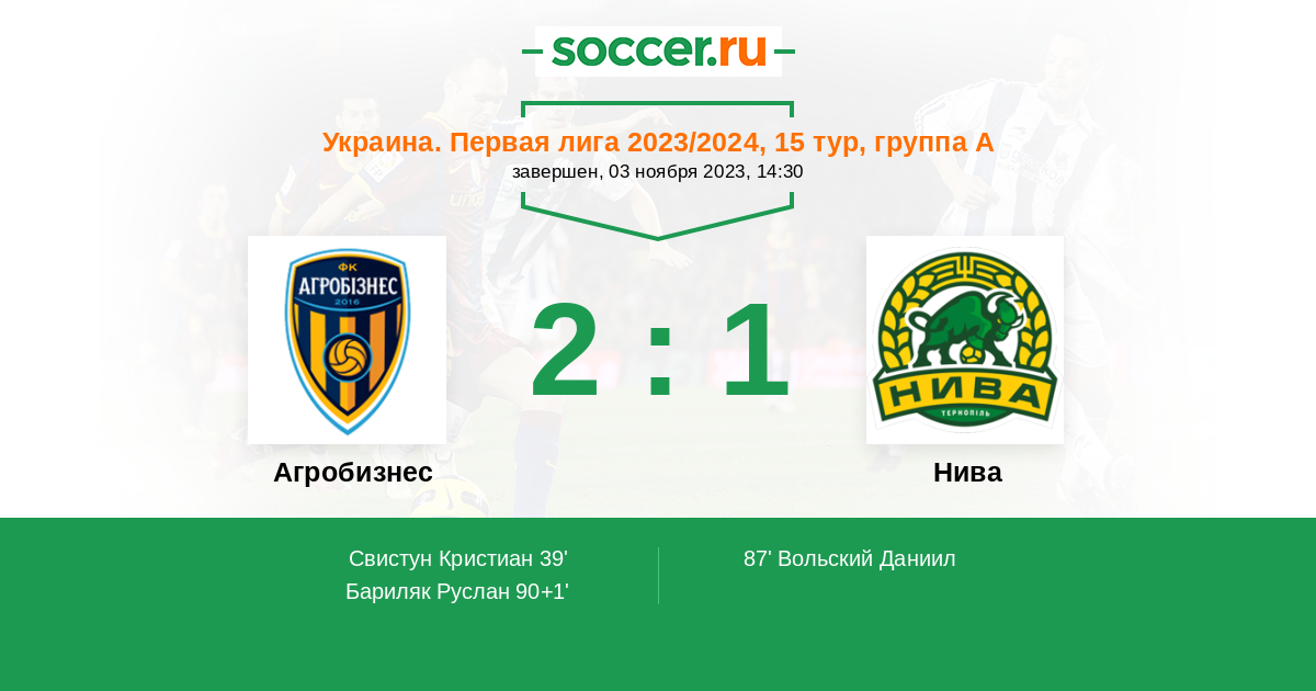 Протокол матча Агробизнес против Нива