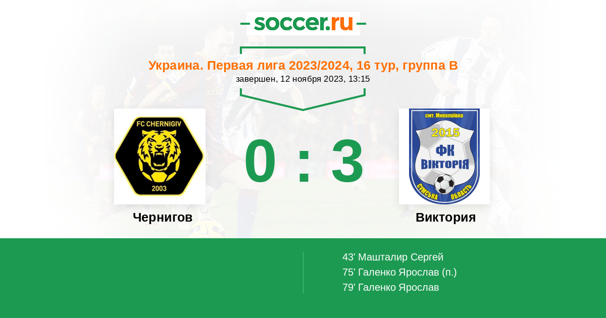 Протокол матча Чернигов против Виктория