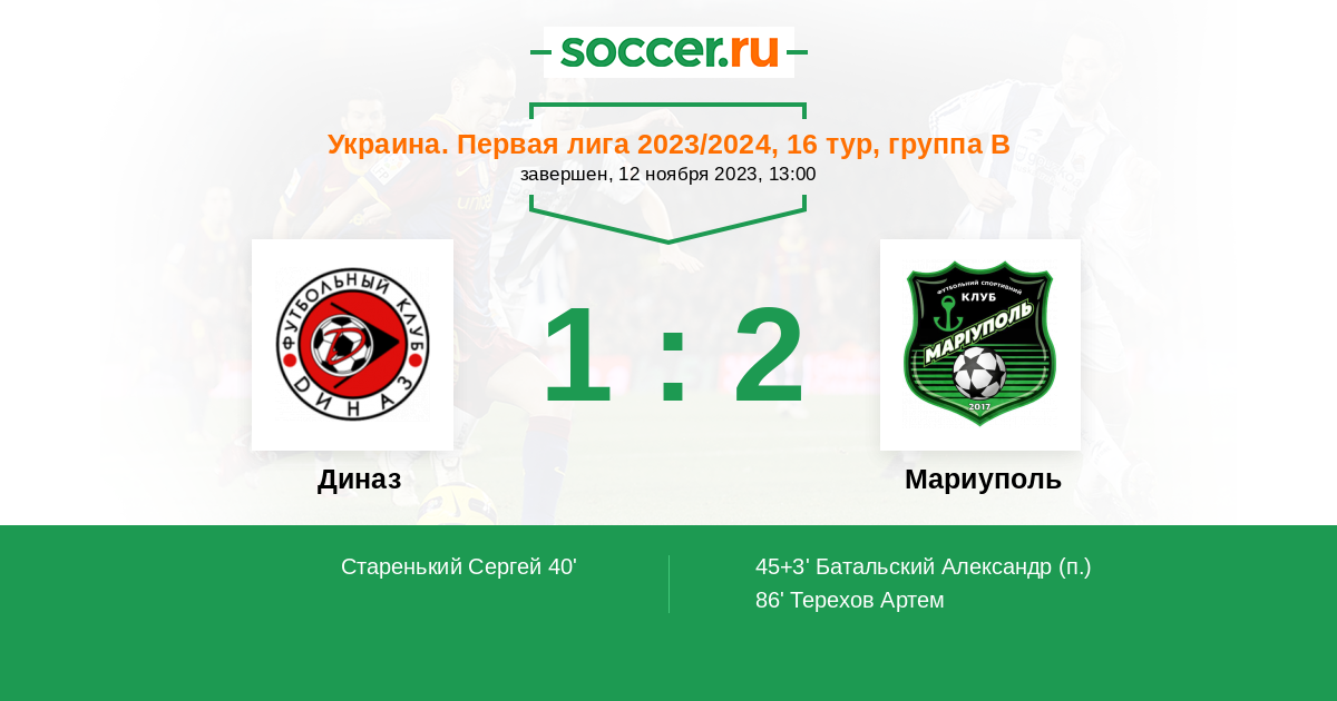 Протокол матча Диназ против Мариуполь