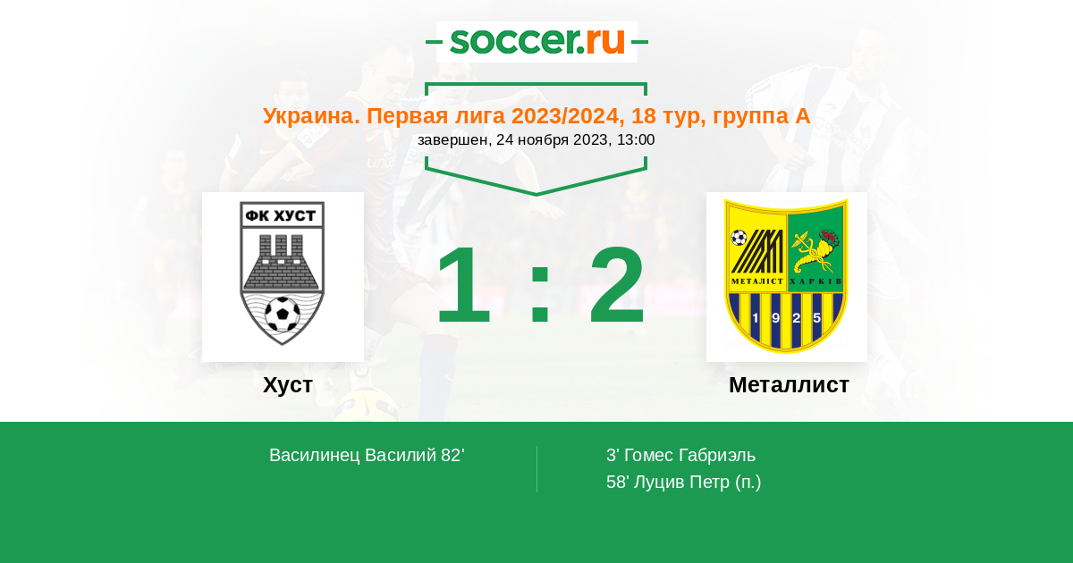Протокол матча Хуст против Металлист