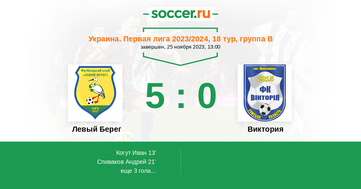 Протокол матча Левый Берег против Виктория
