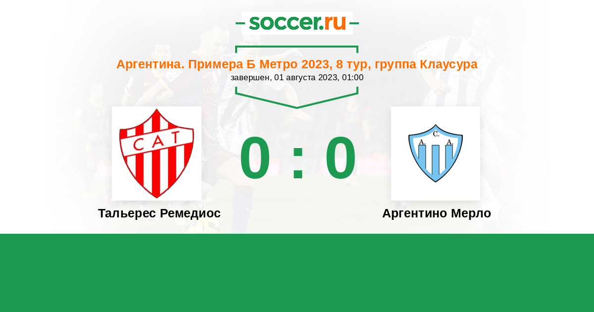 Протокол матча Тальерес Ремедиос против Аргентино Мерло