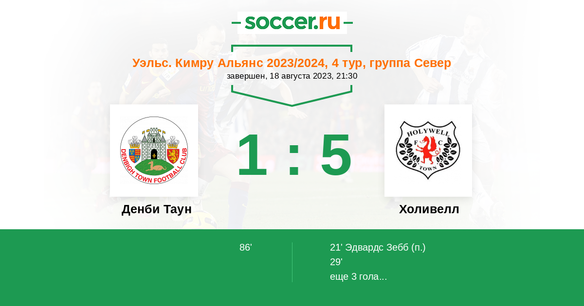 Протокол матча Денби Таун против Холивелл