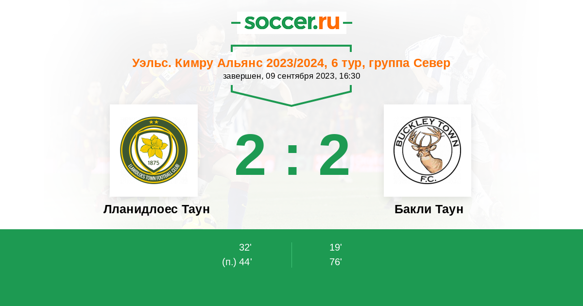Протокол матча Лланидлоес Таун против Бакли Таун
