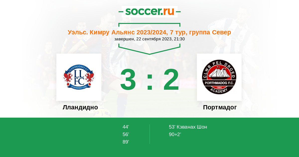 Протокол матча Лландудно против Портмадог