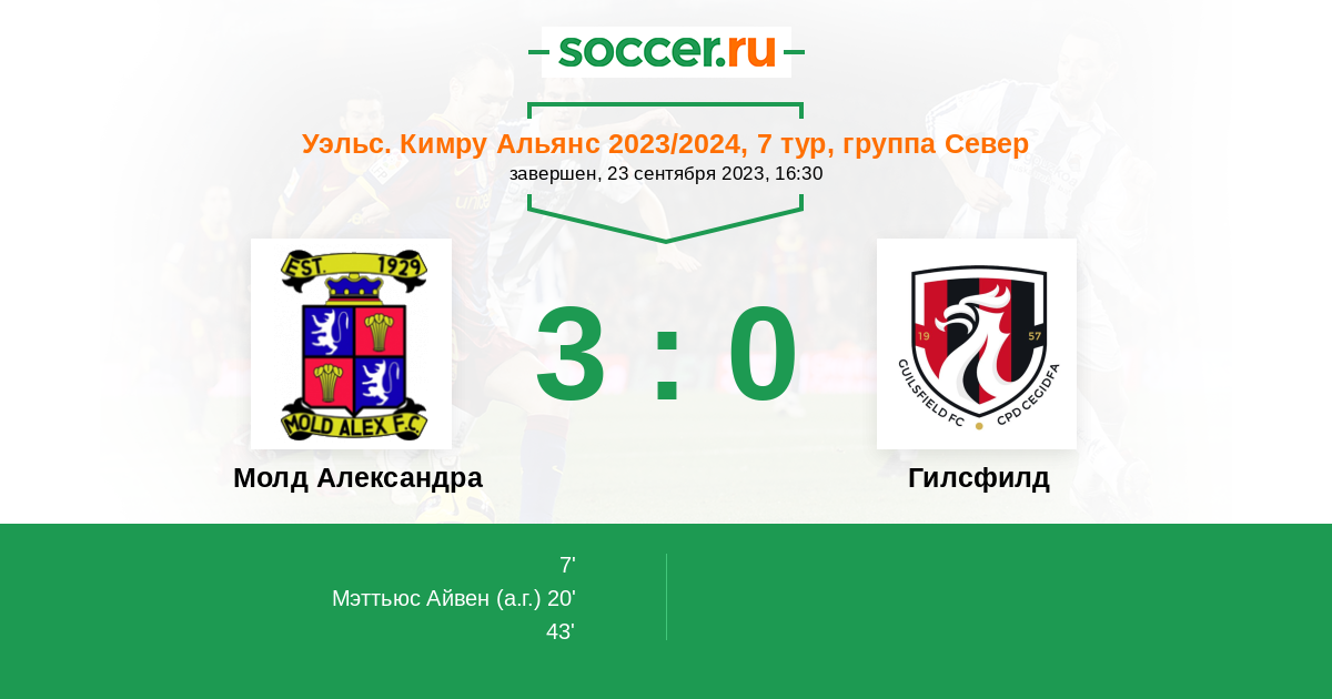 Протокол матча Молд Александра против Гилсфилд