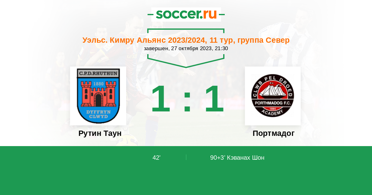 Протокол матча Рутин Таун против Портмадог