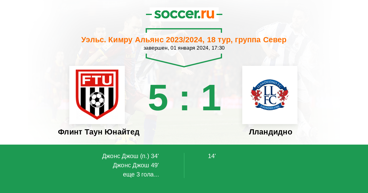 Протокол матча Флинт Таун Юнайтед против Лландудно
