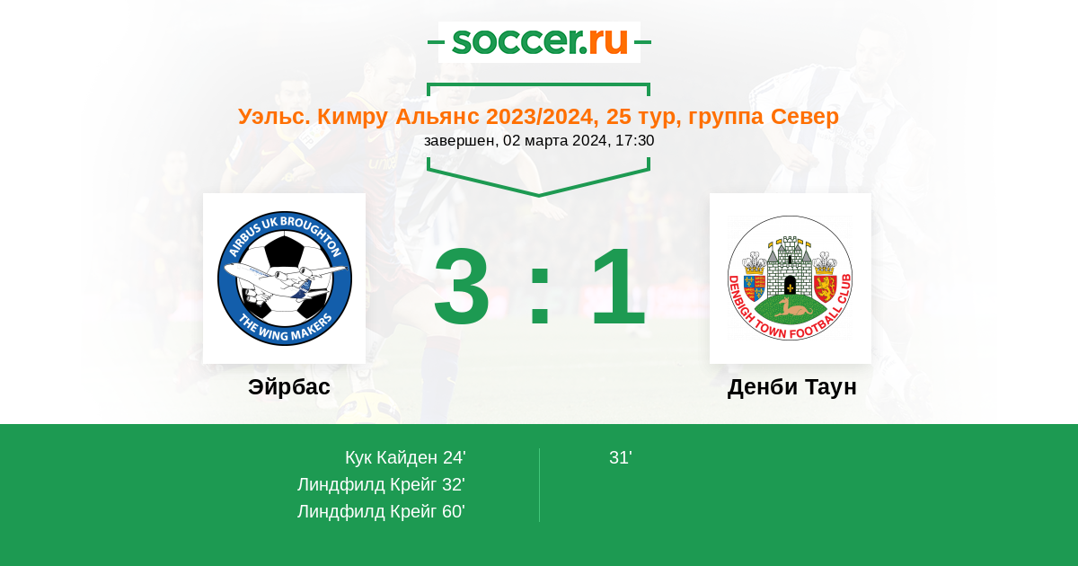 Протокол матча Эйрбас против Денби Таун