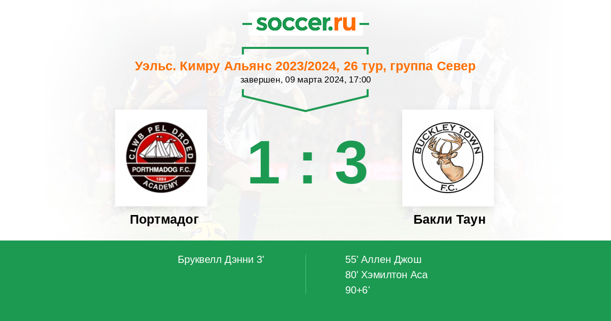 Протокол матча Портмадог против Бакли Таун