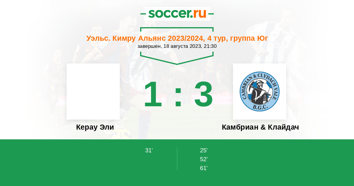 Протокол матча Керау Эли против Камбриан & Клайдач