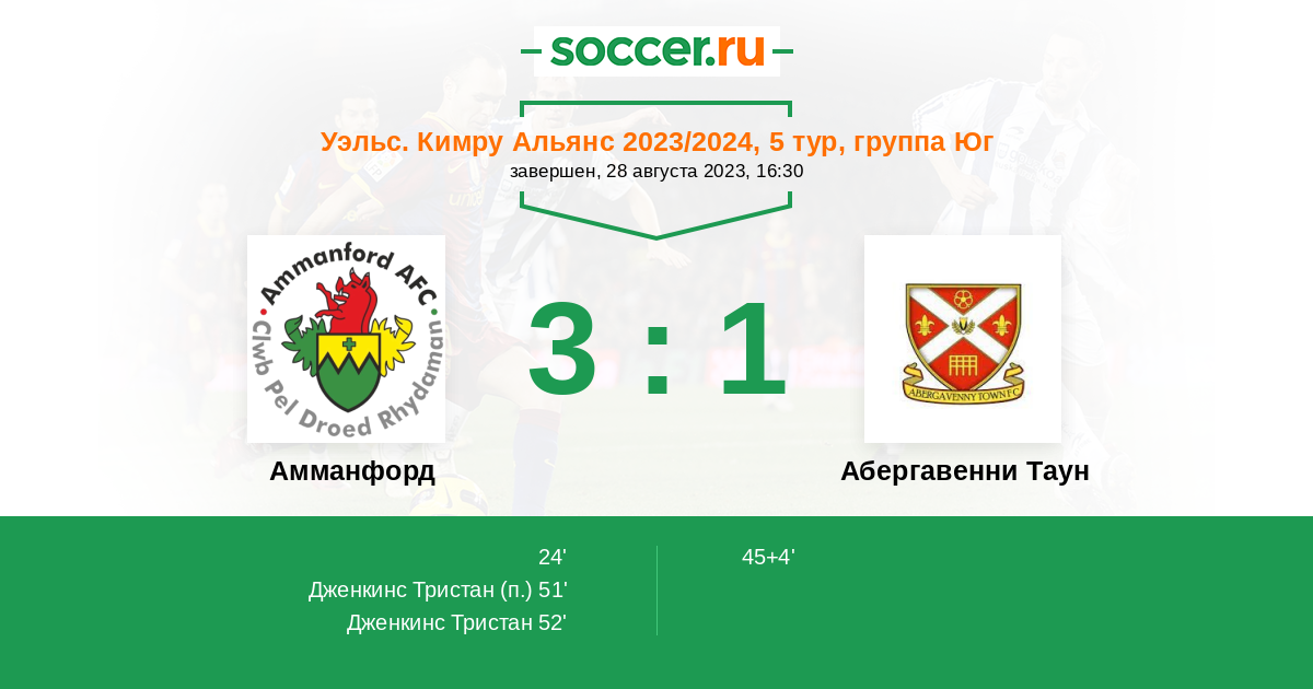 Протокол матча Амманфорд против Абергавенни Таун