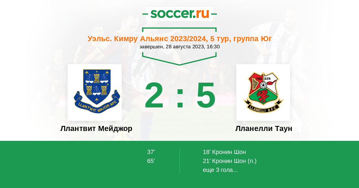 Протокол матча Ллантвит Мейджор против Лланелли Таун