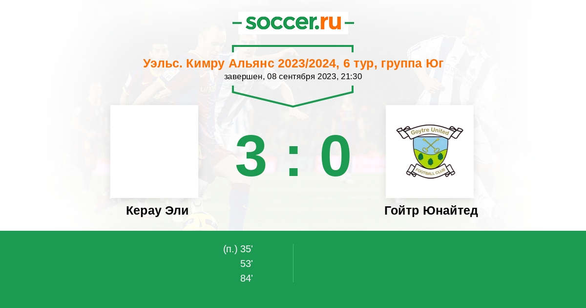 Протокол матча Керау Эли против Гойтр Юнайтед