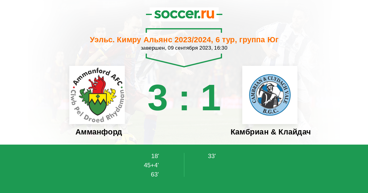 Протокол матча Амманфорд против Камбриан & Клайдач