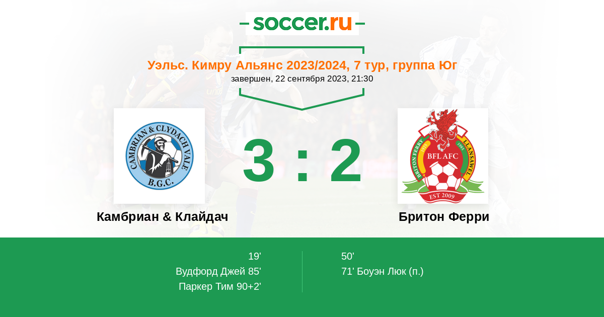 Протокол матча Камбриан & Клайдач против Бритон Ферри
