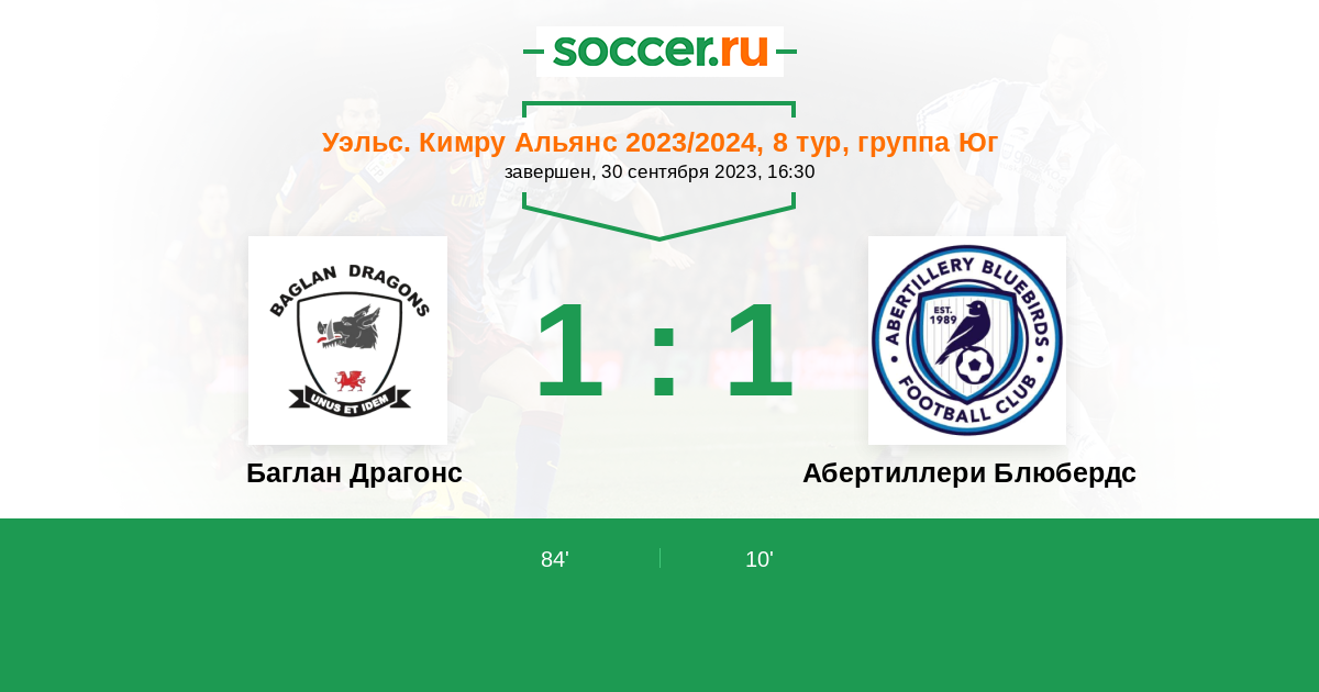 Протокол матча Баглан Драгонс против Абертиллери Блюбердс