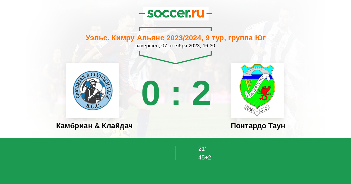 Протокол матча Камбриан & Клайдач против Понтардо Таун