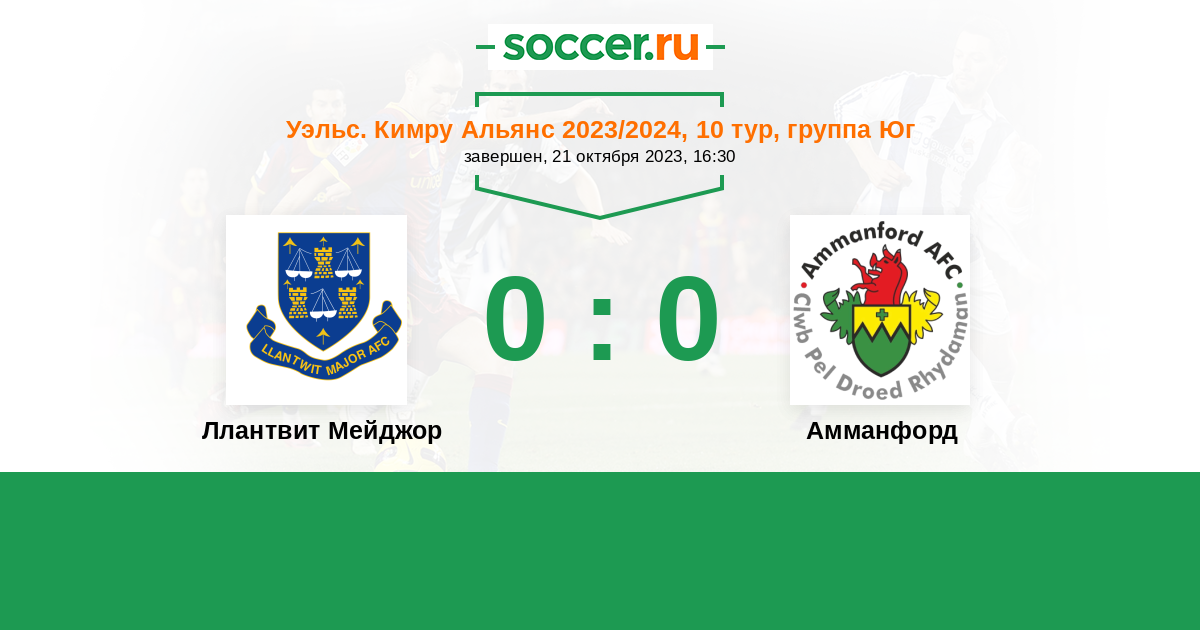 История матча Ллантвит Мейджор против Амманфорд