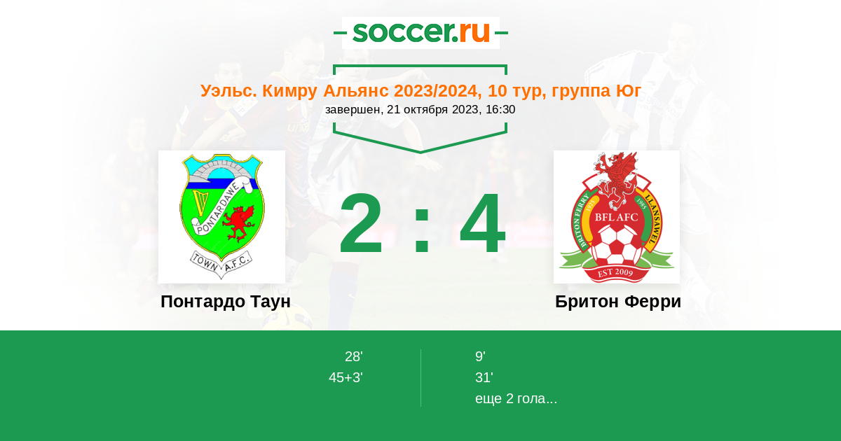 Протокол матча Понтардо Таун против Бритон Ферри