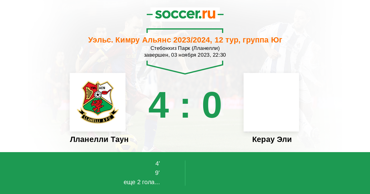 Протокол матча Лланелли Таун против Керау Эли
