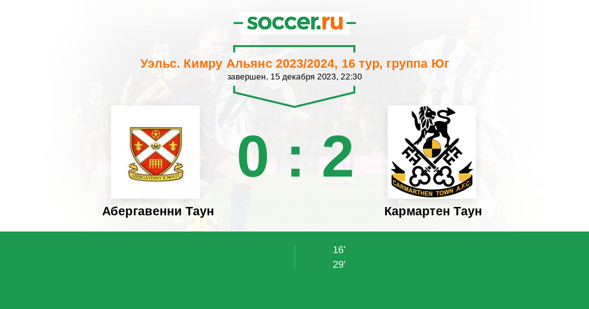 Протокол матча Абергавенни Таун против Кармартен Таун