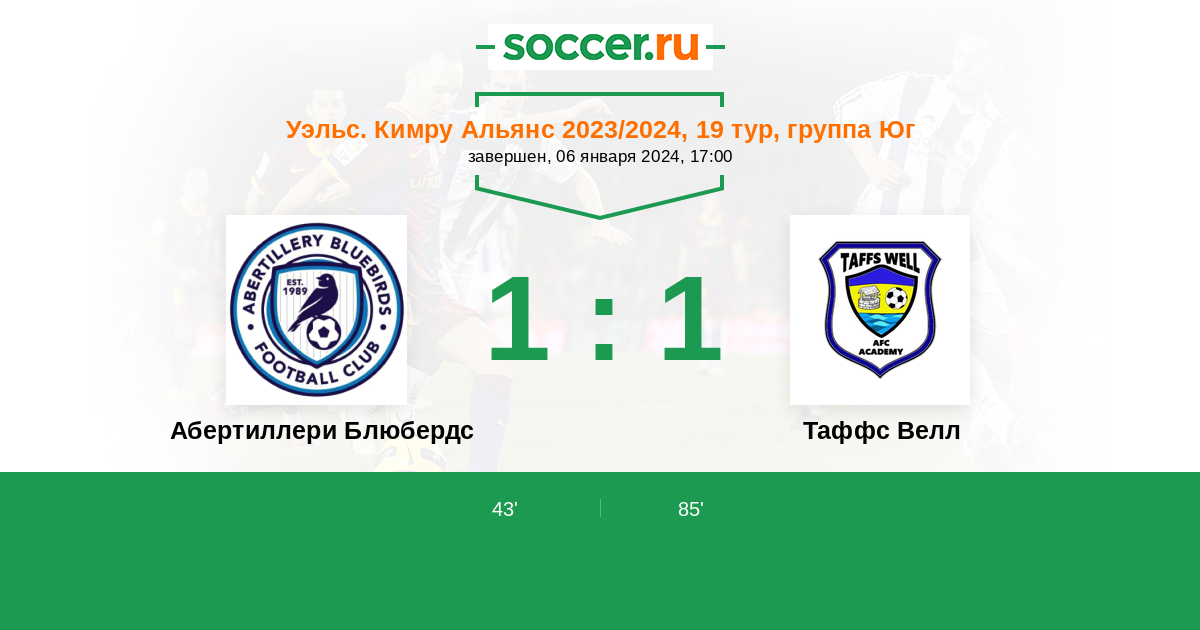 Протокол матча Абертиллери Блюбердс против Таффс Велл