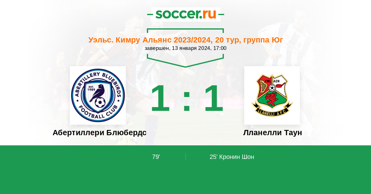 Протокол матча Абертиллери Блюбердс против Лланелли Таун