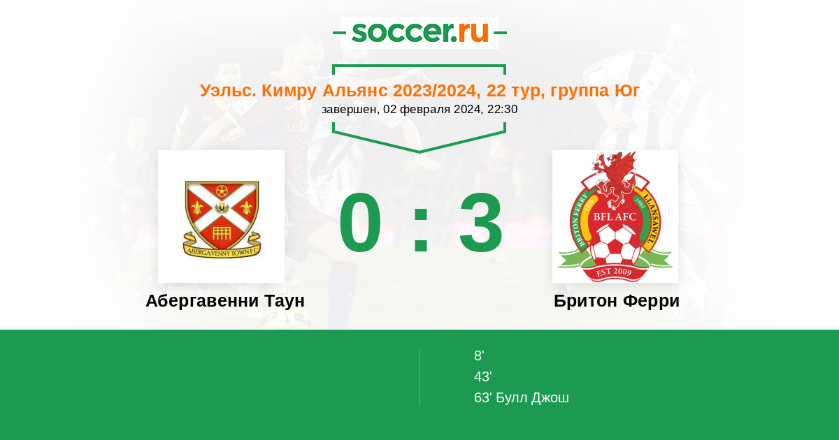 Протокол матча Абергавенни Таун против Бритон Ферри