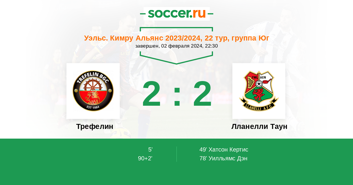 Протокол матча Трефелин против Лланелли Таун
