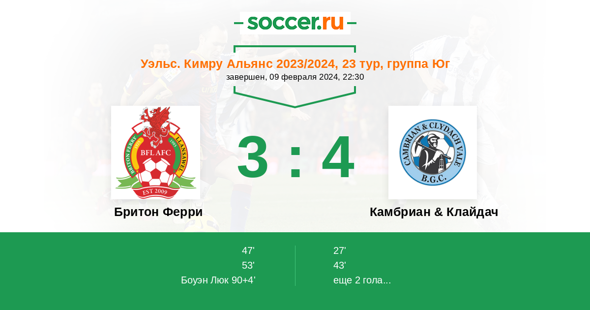 Протокол матча Бритон Ферри против Камбриан & Клайдач