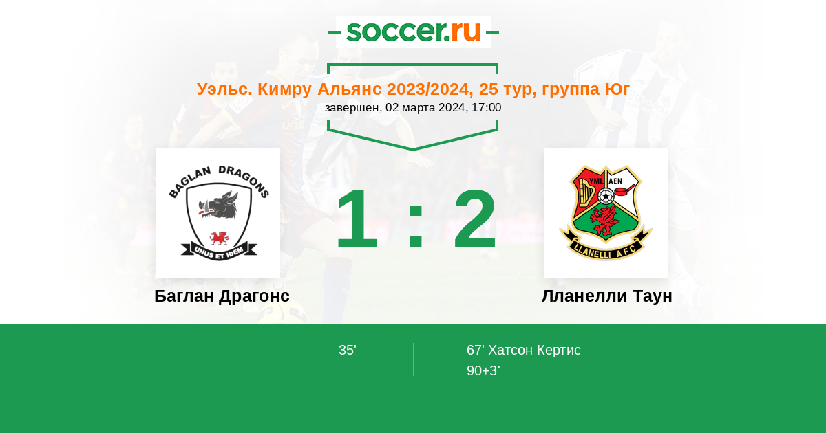 Протокол матча Баглан Драгонс против Лланелли Таун