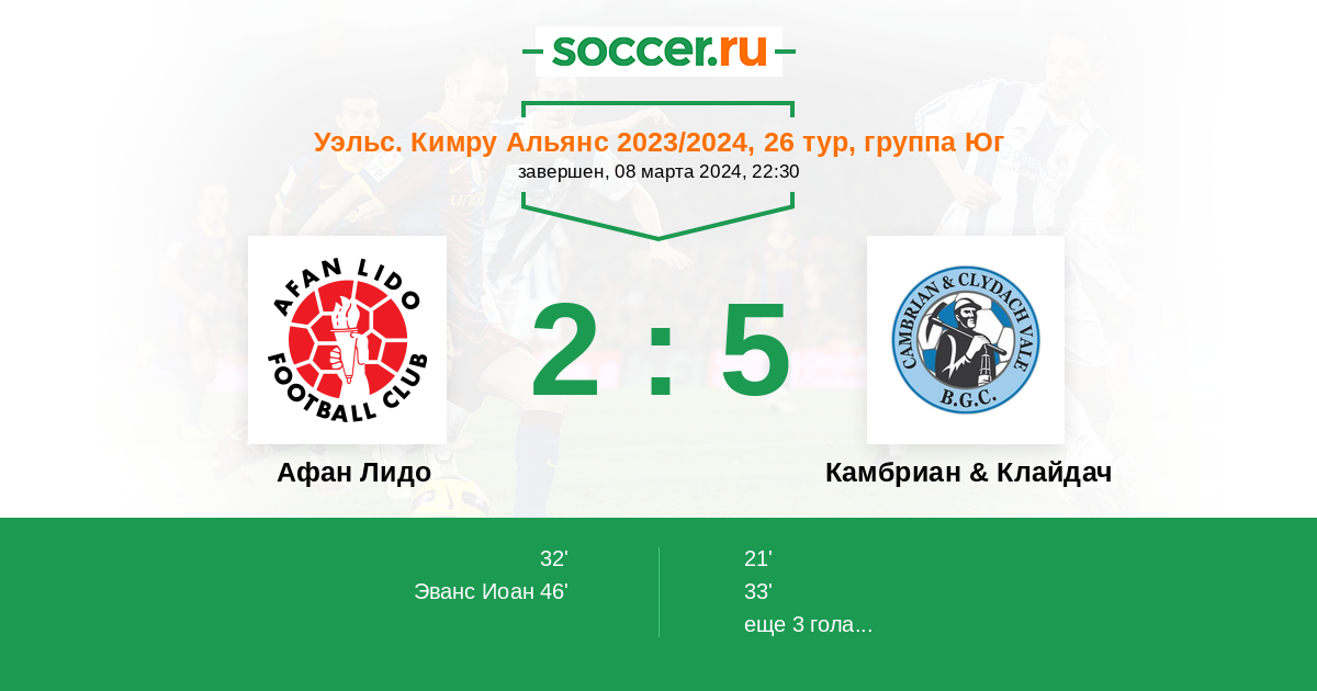 Протокол матча Афан Лидо против Камбриан & Клайдач