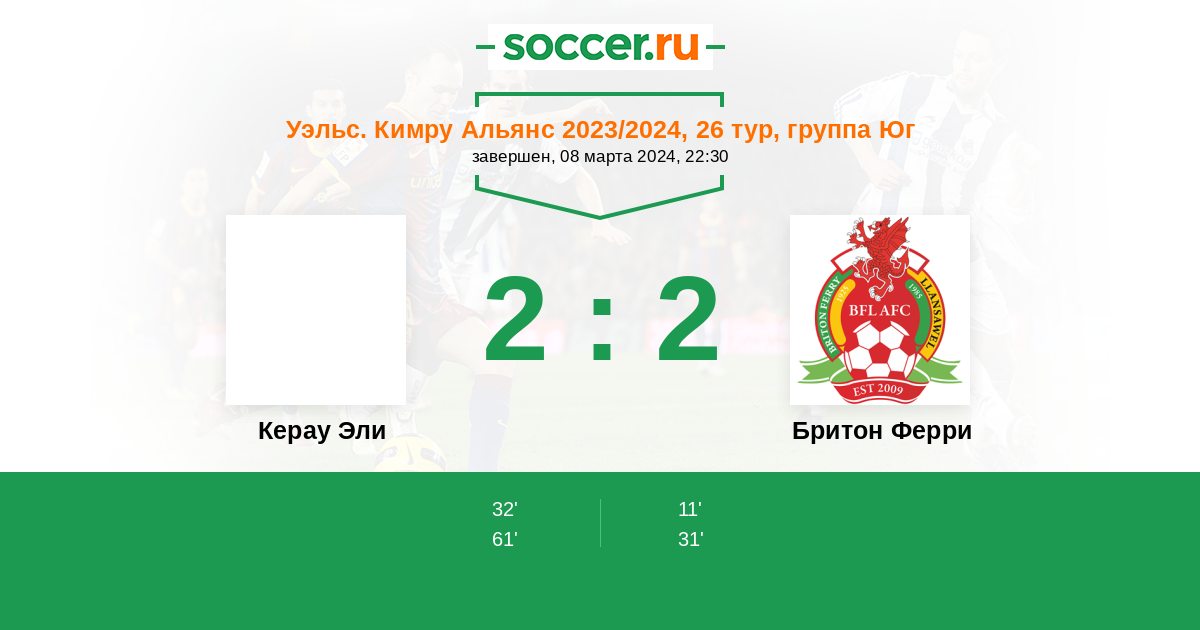 Протокол матча Керау Эли против Бритон Ферри