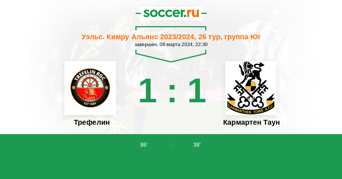 Протокол матча Трефелин против Кармартен Таун