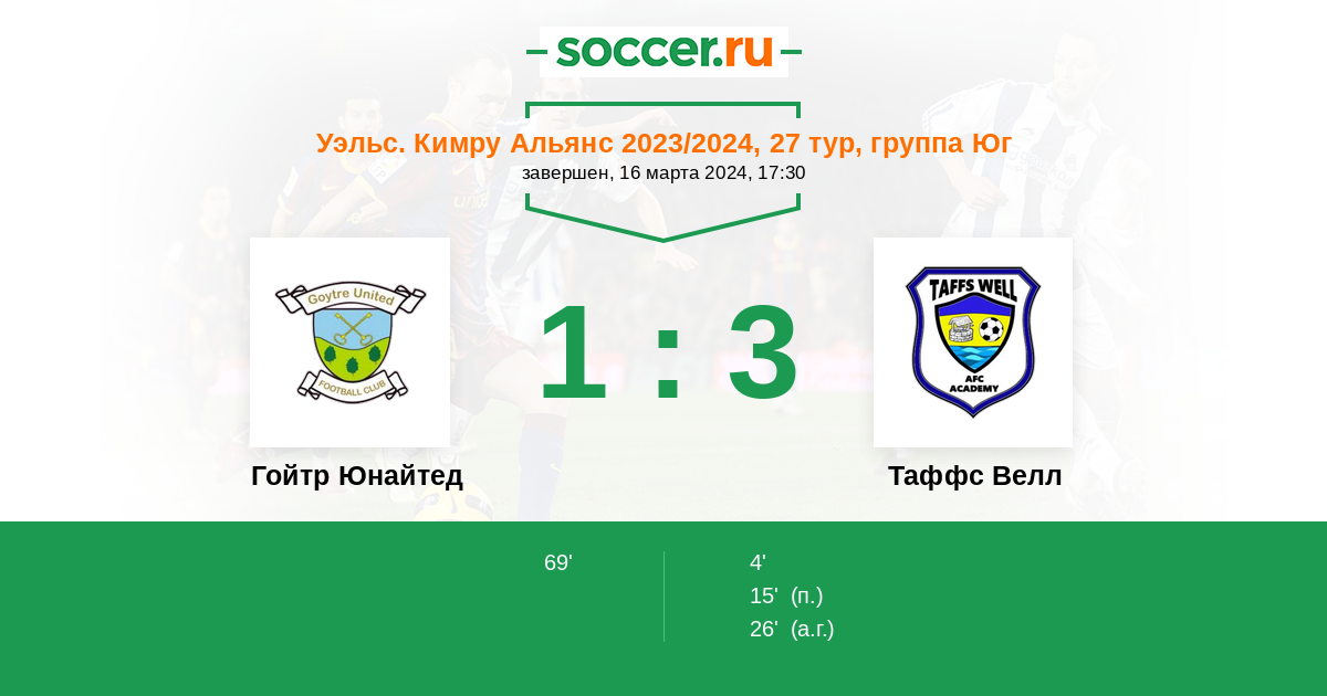 Протокол матча Гойтр Юнайтед против Таффс Велл