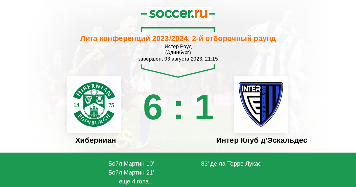 Протокол матча Хиберниан против Интер Клуб д'Эскальдес