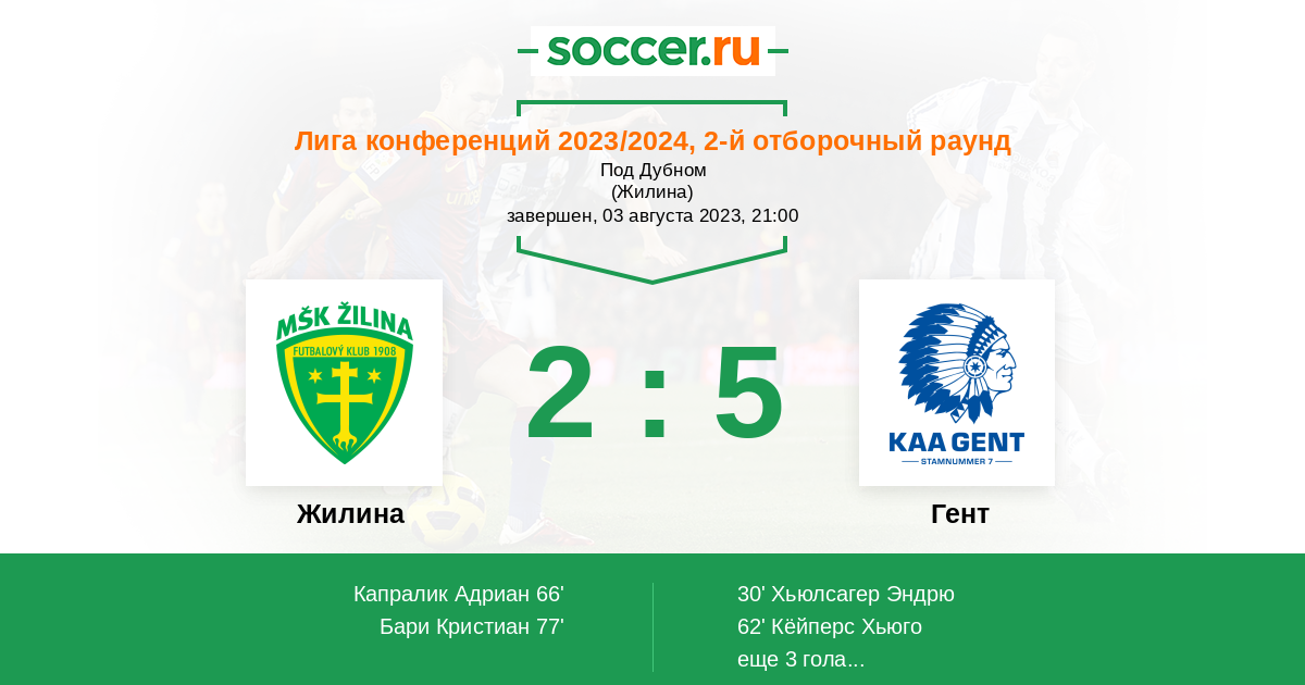 Протокол матча Жилина против Гент