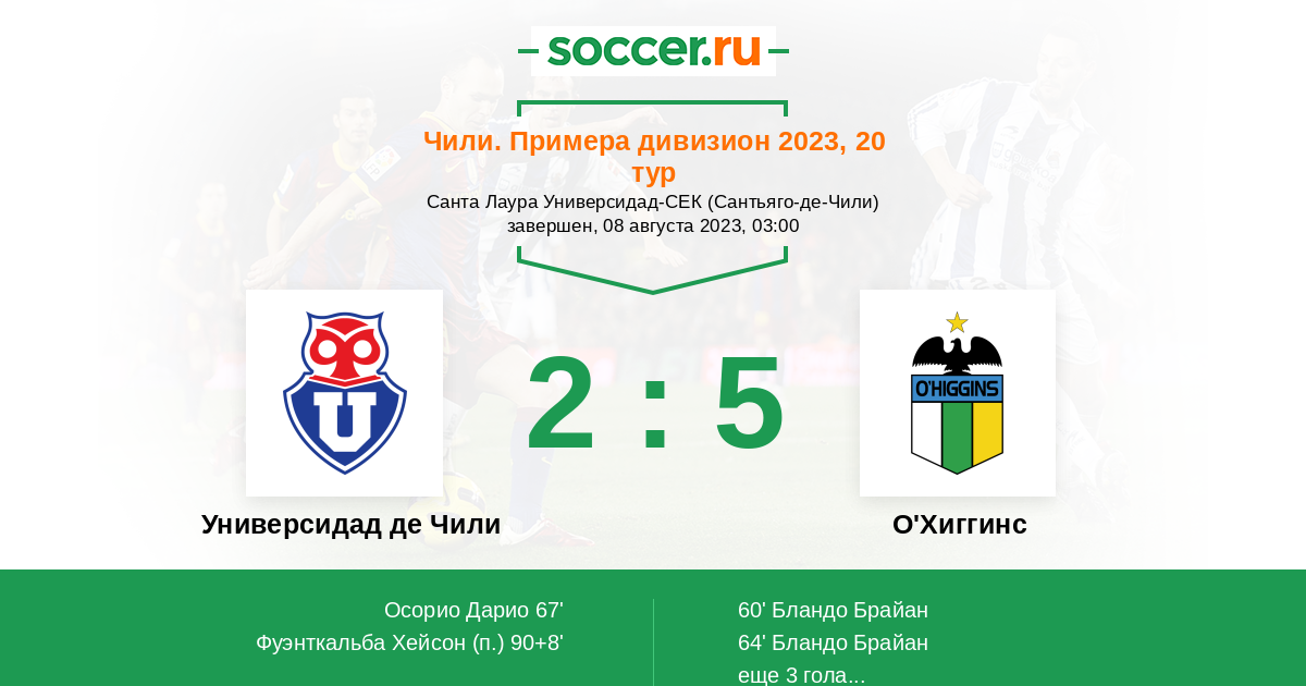 Протокол матча Универсидад де Чили против О'Хиггинс
