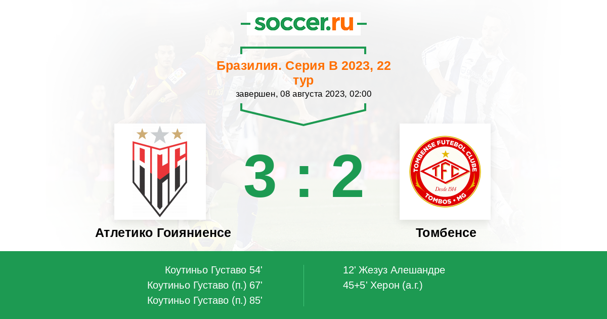 Протокол матча Атлетико Гоияниенсе против Томбенсе