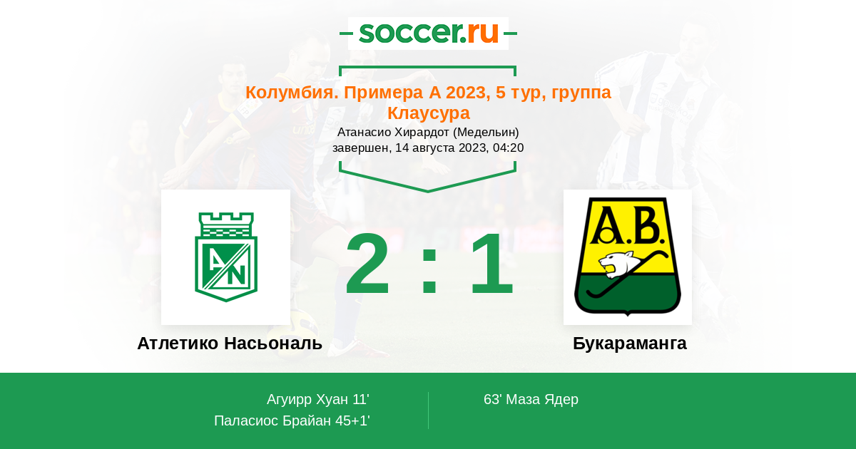 11' (1:0) Агуирр Хуан (3) (Паласиос Брайан (31))