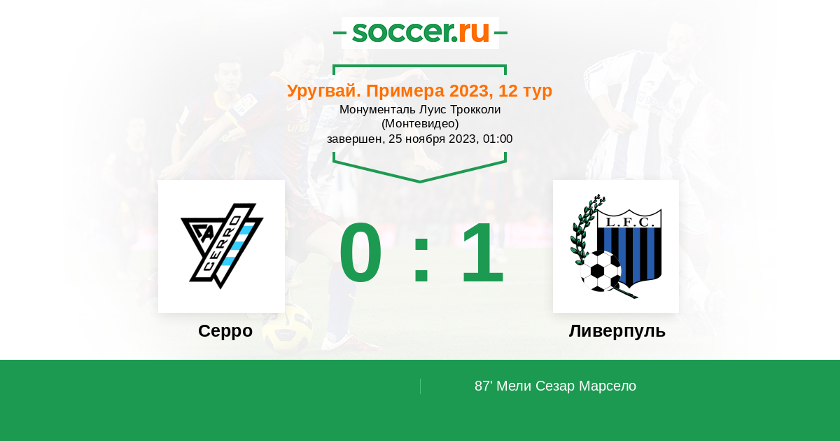 Протокол матча Серро против Ливерпуль