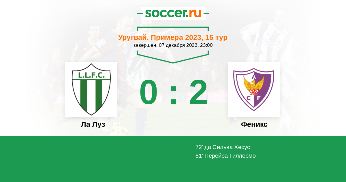 Протокол матча Ла Луз против Феникс