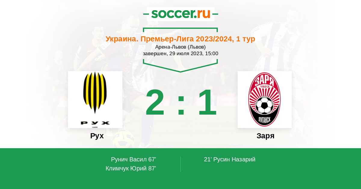 Протокол матча Рух против Заря