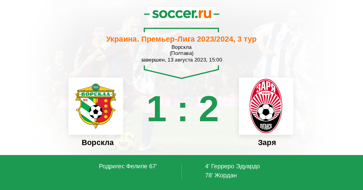 Протокол матча Ворскла против Заря