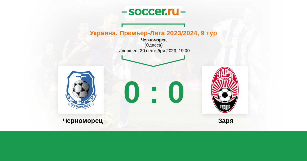 Протокол матча Черноморец против Заря