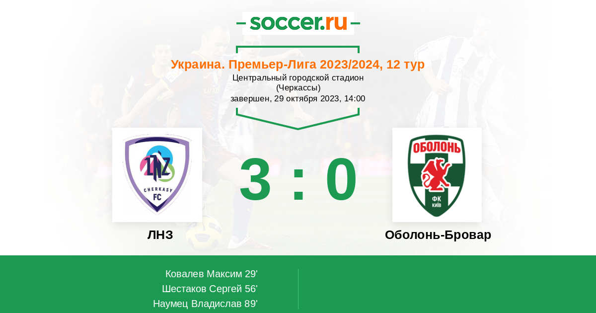 Протокол матча ЛНЗ против Оболонь-Бровар