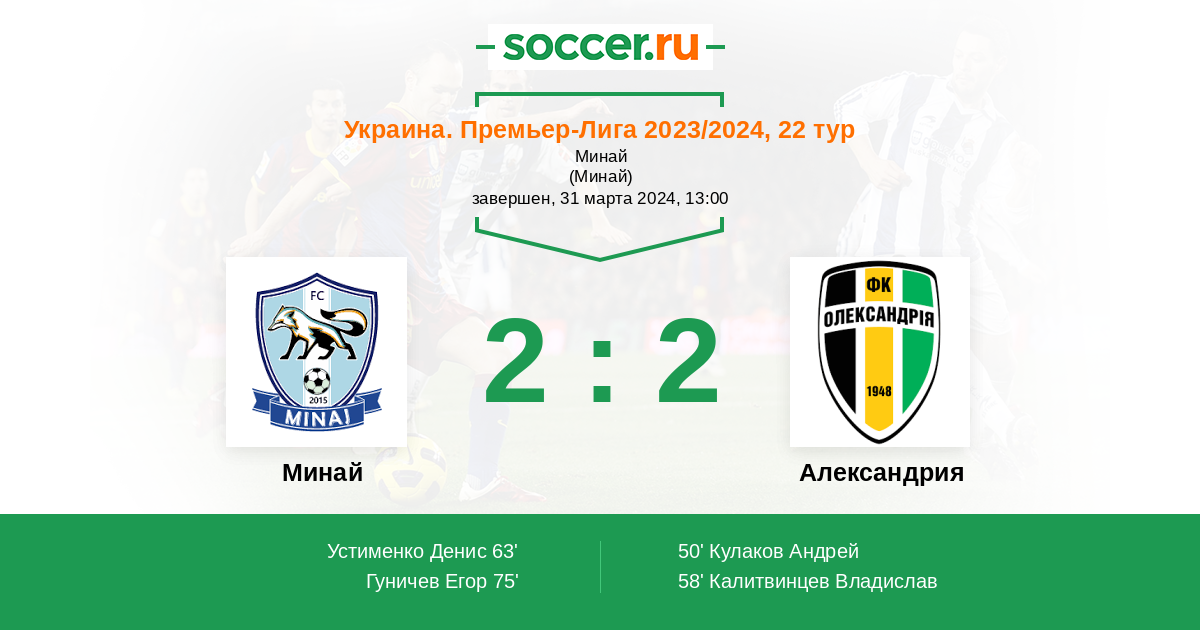 Протокол матча Минай против Александрия