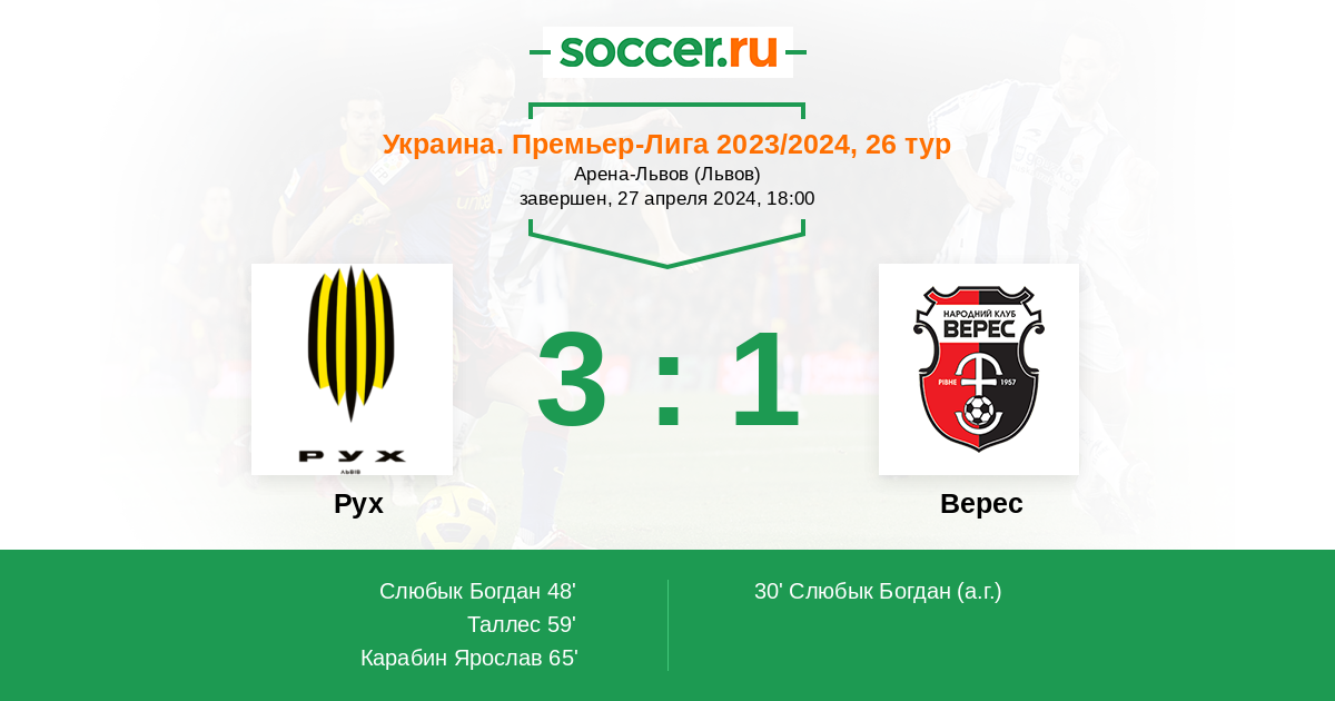 59' (2:1) Таллес (30) (Карабин Ярослав (8))