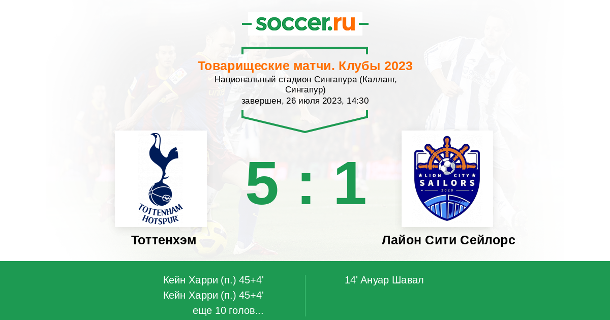 Протокол матча Тоттенхэм против Лайон Сити Сейлорс